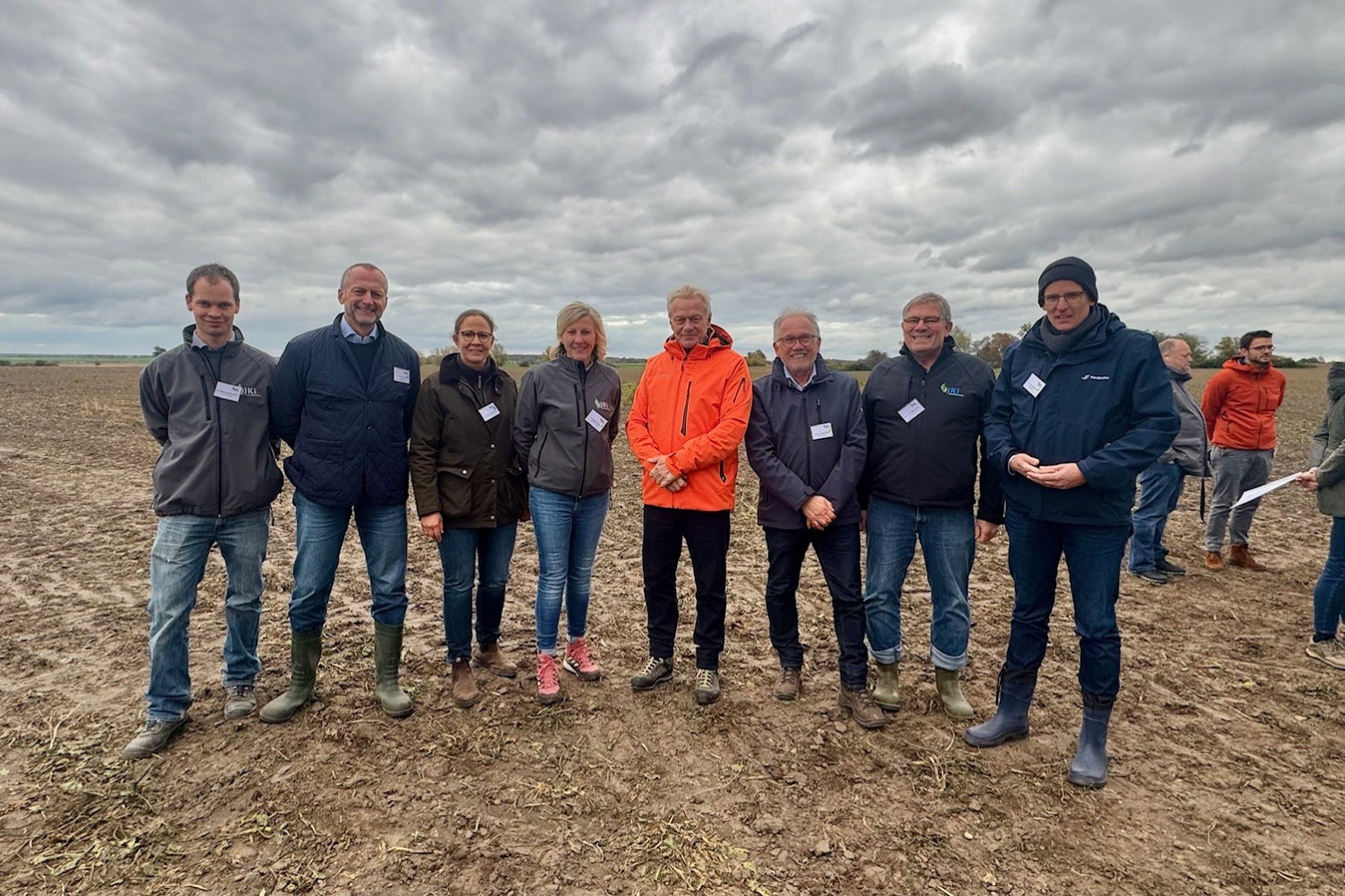 Der Bundesminister für Landwirtschaft, Ernährung und Heimat Alois Rainer hat am 24.10.2025 eine SBR-Modellregion (SBR: Syndrome basses richesses) besucht. In der Elbaue bei Magdeburg informierte er sich auf Flächen mit Befall durch die Schilf-Glasflügelzikade über aktuelle Forschungsansätze der Ressortforschung, der Zuckerwirtschaft und des Instituts für Zuckerrübenforschung. Frau Prof. Anne-Katrin Mahlein konnte dem Minister adulte Schilf-Glasflügelzikaden an Zuckerrüben und verschiedene Larvenstadien aus Gewächshaus-Untersuchungen am IfZ zeigen. Es wurde deutlich, auf wie vielen unterschiedlichen Ansätzen die Forschungen zurzeit beruhen: Feldversuche mit angepassten Fruchtfolgen werden ergänzt durch Untersuchungen zur Entwicklung der Zikaden unter kontrollierten Bedingungen. In der Züchtung wird nach Resistenzquellen gesucht. Ein umfassendes Monitoring liefert Ergebnisse zum Auftreten der Zikaden unter verschiedenen Umweltbedingungen und bei verschiedenen Feldfrüchten wie Zuckerrüben, Kartoffeln und Wurzelgemüse.