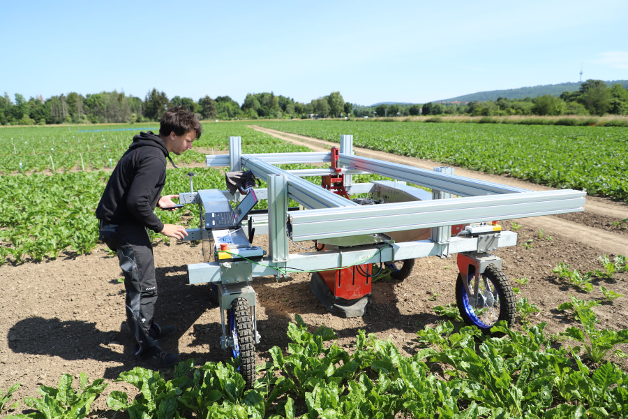 Das Team entwickelt und evaluiert digitale Lösungen für alle Belange des Zuckerrübenanbaus. Dabei kommen unterschiedliche Kamerasysteme wie RGB- und Thermalkameras, 3D-Sensoren, aber auch spektrale Messgeräte auf den Skalen Labor, Gewächshaus und Feld zum Einsatz. Sensoren werden auf automatisierten Plattformen (Roboter oder Drohne) im Feld eingesetzt.